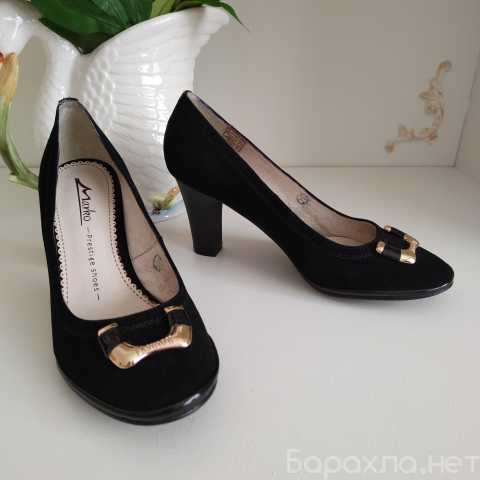 Туфли новые (не ношенные) брендовые Marko из натуральной замши, внутри - натуральная кожа. Размер 37. Высота каблука 7,5 см. На подошве фирменная защитная наклейка. Удобная колодка. Продаю, т.к.тесны по полноте ноги. Фирменную коробочку от туфлей не сохранила, думала, что буду носить туфли.